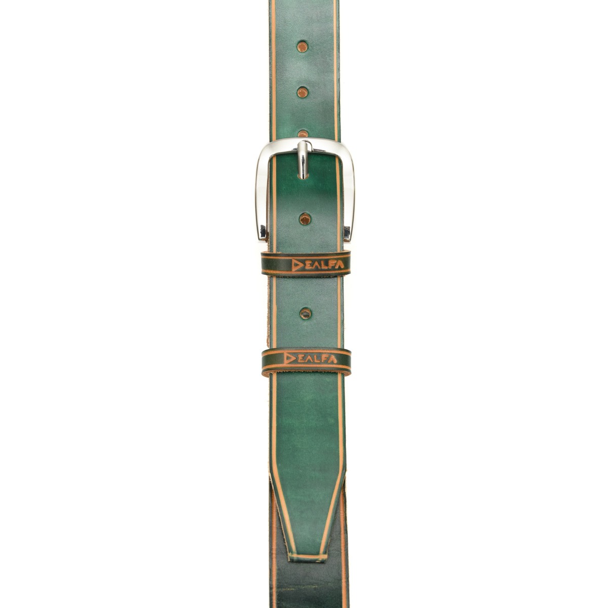 Cintura Artigianale in Cuoio da 4 cm con Fibbia Liscia Colore Verde